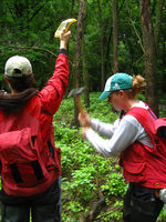 Poles to mark the corners are pounded into the ground. A GPS unit is used to record the pole's location