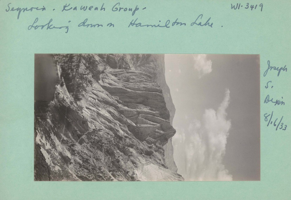 Looking down on Hamilton Lake. Negative #: 3419. Locality: Sequoia National Park, Kaweah Group.