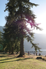 Large trees border the edge of Lake Crescent along the lodge landscape. Mature native trees contribute to the character of the landscape and help create a sense of spatial arrangement. Olympic National Park