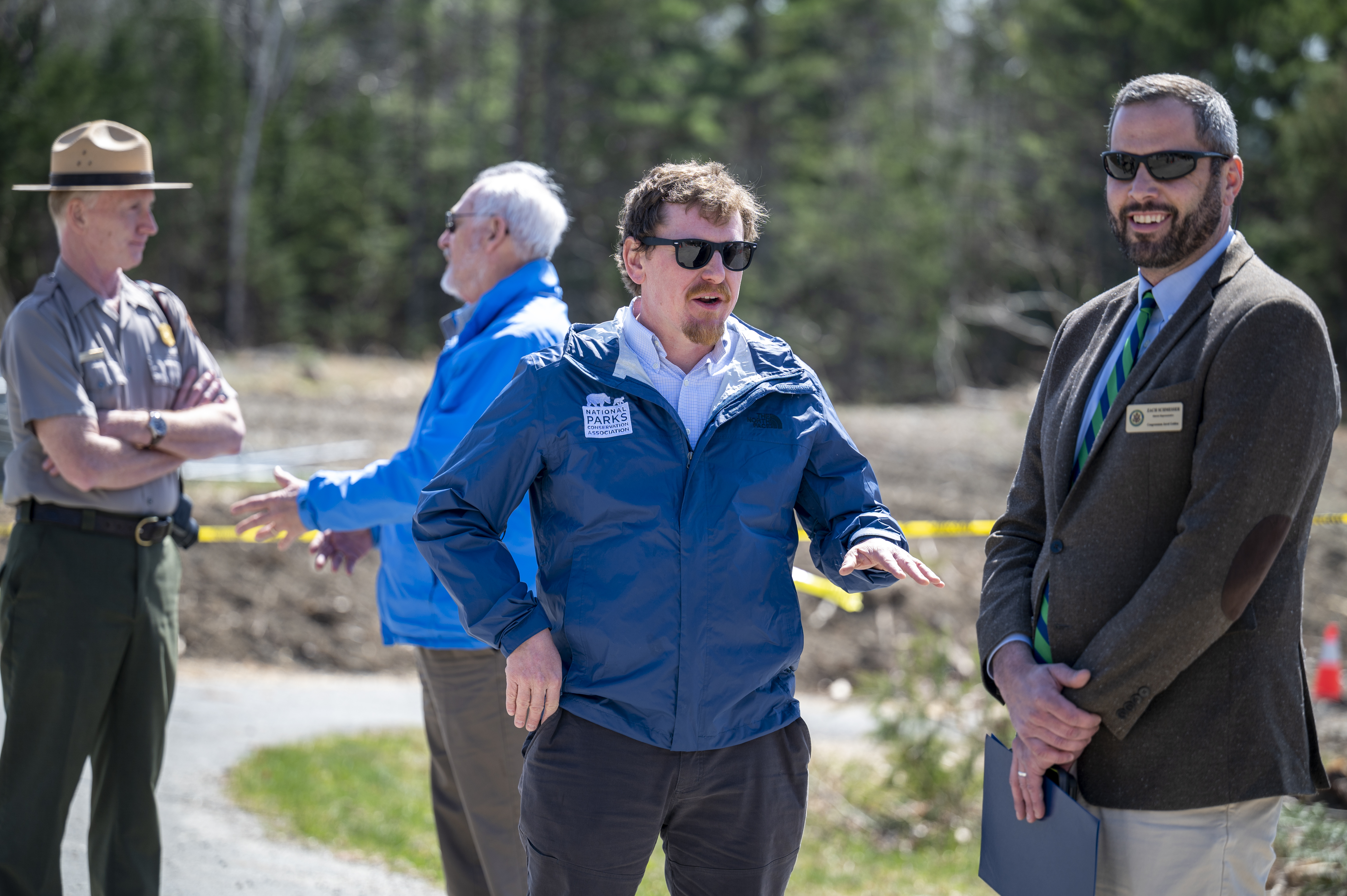 Individuals engage in conversation as they wait for the groundbreaking ceremony to begin.