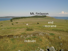 Figure 16. American Camp prairie. The vast prairie at American Camp formed in glacial diamicton. The view in this photograph is to the southeast, toward Mt. Finlayson, with the redoubt (temporary fortification) in the foreground and the Strait of Juan de Fuca to the right. The diamicton forms an end moraine that developed beneath the most recent glacier.