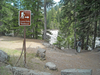 Hikers starting up the trail to Carter Falls from the trailhead and sign.