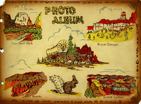 The embossed covers of this album were produced by the Utah Parks Company. A recent donation to the Zion Museum, this album was purchased by a Zion Inn employee in the 1960s and filled with photographs from her season working and exploring in the park.