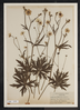 Preserved Specimen On A3 Paper With A Printed Label Identifying It In The Bottom Right Corner. The Paper Is Mounted On A Larger Cardboard And Covered With Plastic Which Is Sealed To The Board. There Are Many Samples Which Have Been Cleanly Cut From The Main Plant. There Are No Roots Preserved On The Page. There Are Five Large Leaves With Short Stems Attached. The Longer Stems All Terminate In Open Flowers, Closed Buds Or What Appear To Be Seed Structures. The Bottoms Of These Stems Are Covered By The Leaves. The Samples Are Attached To The Page With Adhesive And Thin Strips Of White Cloth Tape.