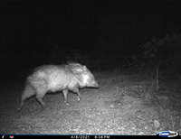 Javelina walks past wildlife camera at night