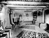 UPSTAIRS SALES ROOM IN HOPI HOUSE. BENCHES AROUND ROOM DRAPED WITH NAVAJO RUGS. CIRCA 1905. DETROIT PHOTOGRAPH