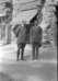Member of Supt. Lewis' family with deer on Supt's House. Setinel Hotel and bridge in background.