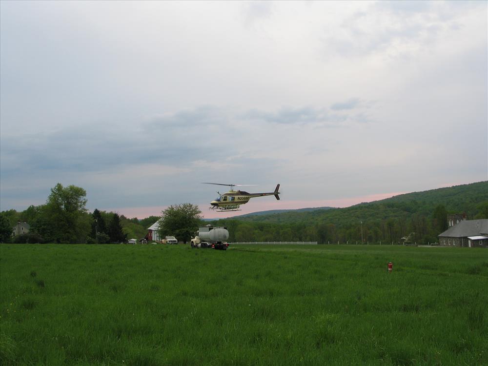Helicopter landing to take on Gypchek for 2009 Gypsy Moth spray operations at Catoctin Mountain Park