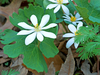 Each bloodroot ; Sanguinaria canadensis; plant has one leaf and one flower.Photographer: Gary Fleming