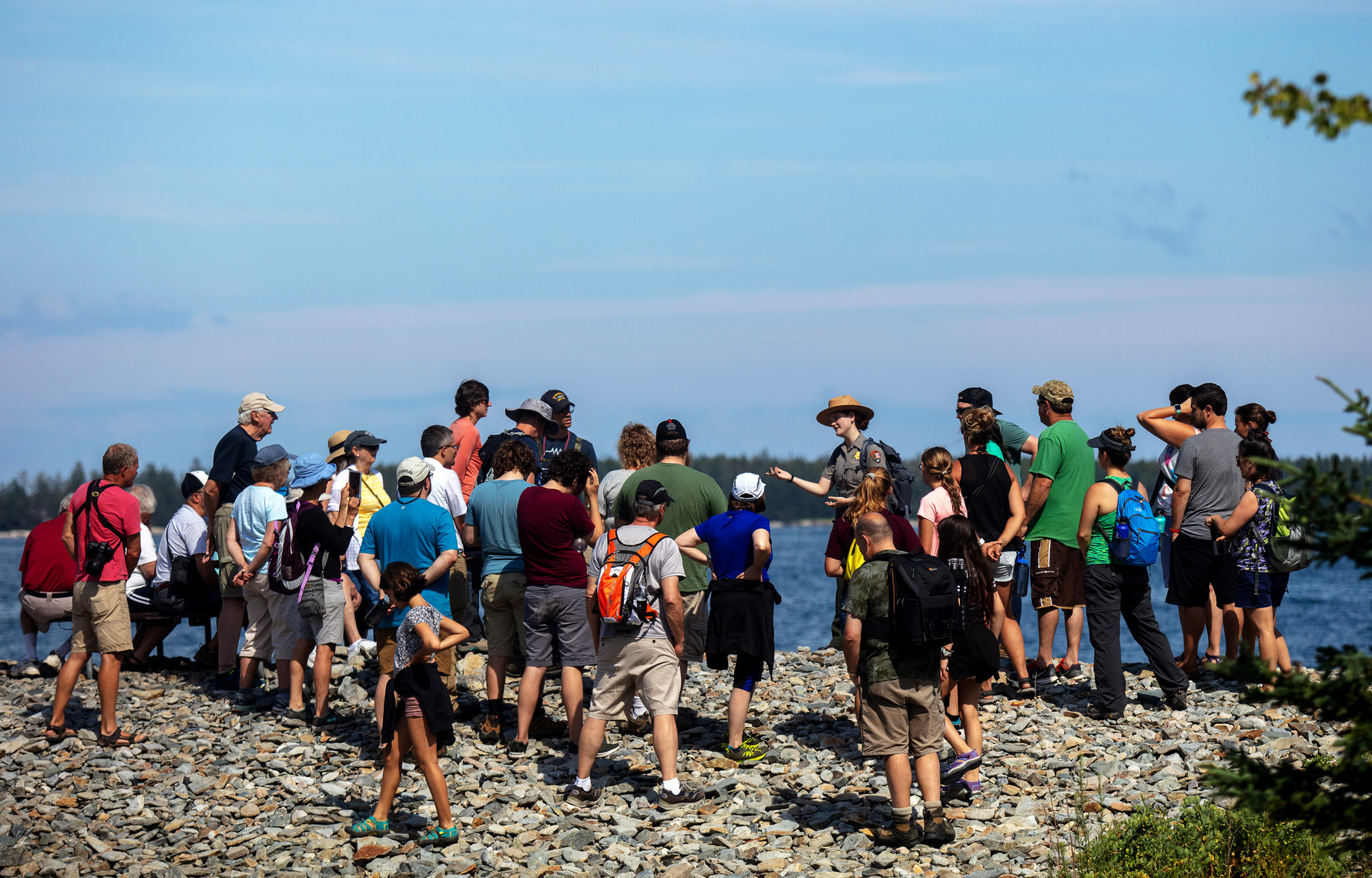 Acadia National Park: Ranger Jennifer Anderson talks about the geology that makes Acadia National Park unique during a guided tour of Seawall Picnic Area in Acadia National Park Wednesday. Visitors were able to join a ranger on a one hour walk along the rocky, cobble stone beach and learn about the unique volcanic and glacial geology that makes Acadia National Park special. (Photo by Ashley L. Conti/Friends of Acadia/NPS)