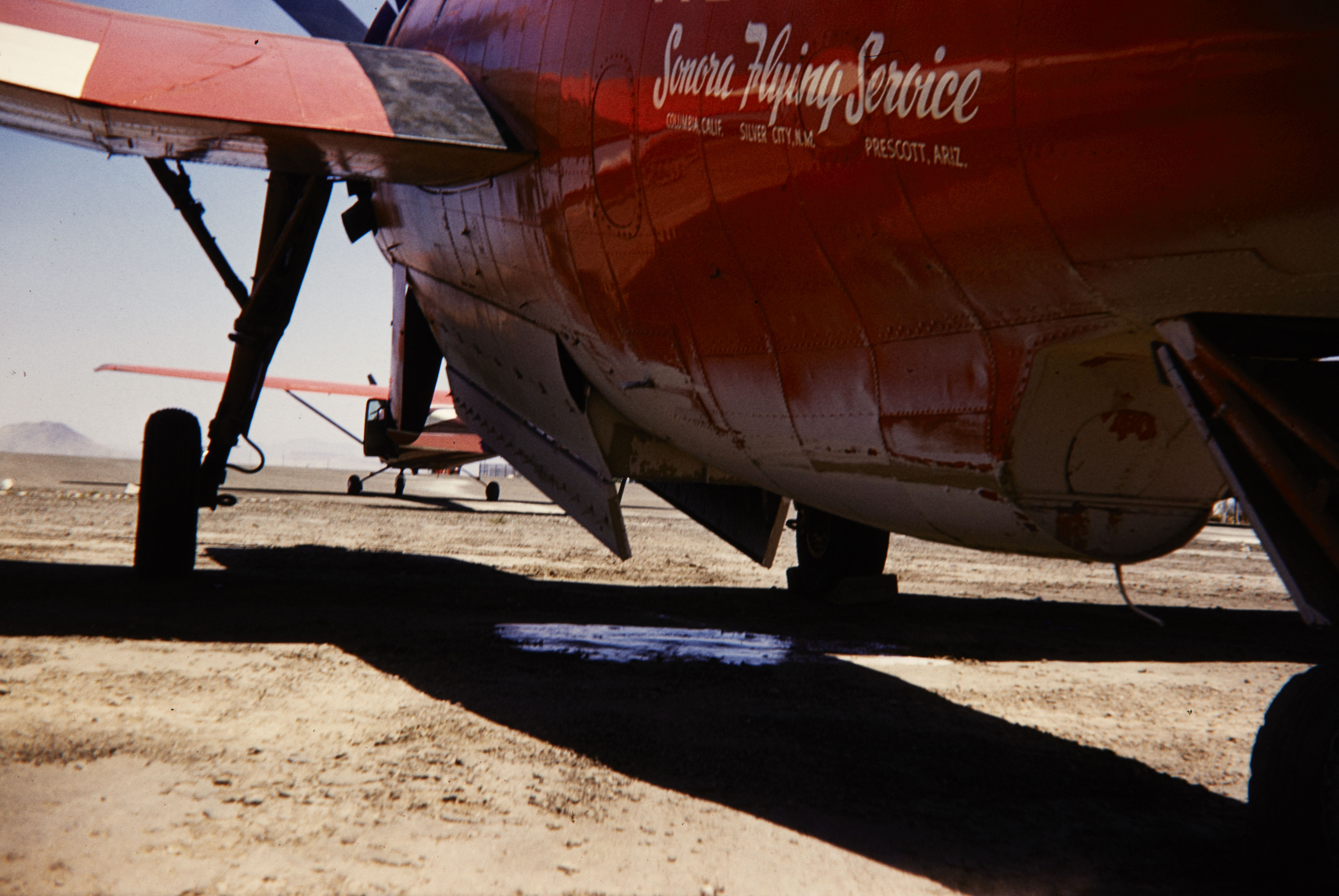 Fires and Firefighting. Close up of a T.B.M. (Torpedo Bomber) airplane with its tanks open in Silver City, New Mexico.