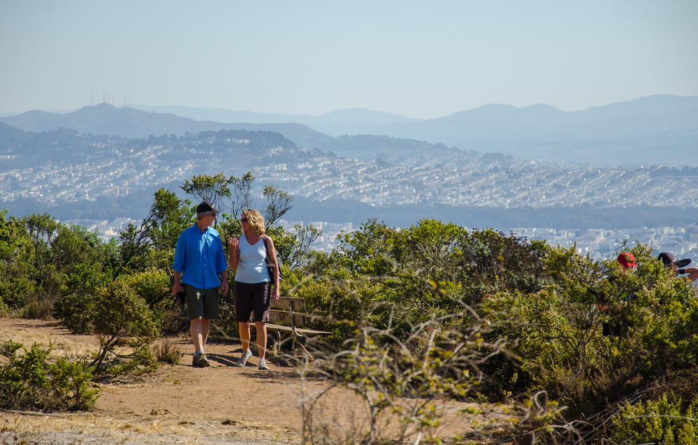 These park visitors are enjoying the hike on Hawk Hill