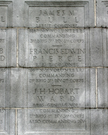1 of 2 New York State Monuments. Erected to commerate NY commanders not listed elsewhere that fought at Gettysburg. Located E side South Hancock Avenue. || Mn, semi-circular 42'L x 24'D x 21' H. Central projecting node of base, shaft incised inscriptions, excised coat-of-arms, topped by spread wing eagle. Incised commander names in circular wall portions. Granite walk to Mn 8'x 14'w/2risers 8."