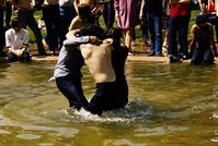 Demonstrations. People in the Lincoln Memorial Reflecting Pool during an anti-war demonstration.