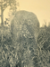 Light grey gravestone, with inscription. Grass and a tree are also visible.