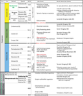 divisions at the bottom and the youngest at the top. Time periods representing strata mapped in the Pipestone