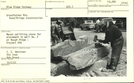 Mason splitting stone for placement in Wall No. 2 at Rough Ridge