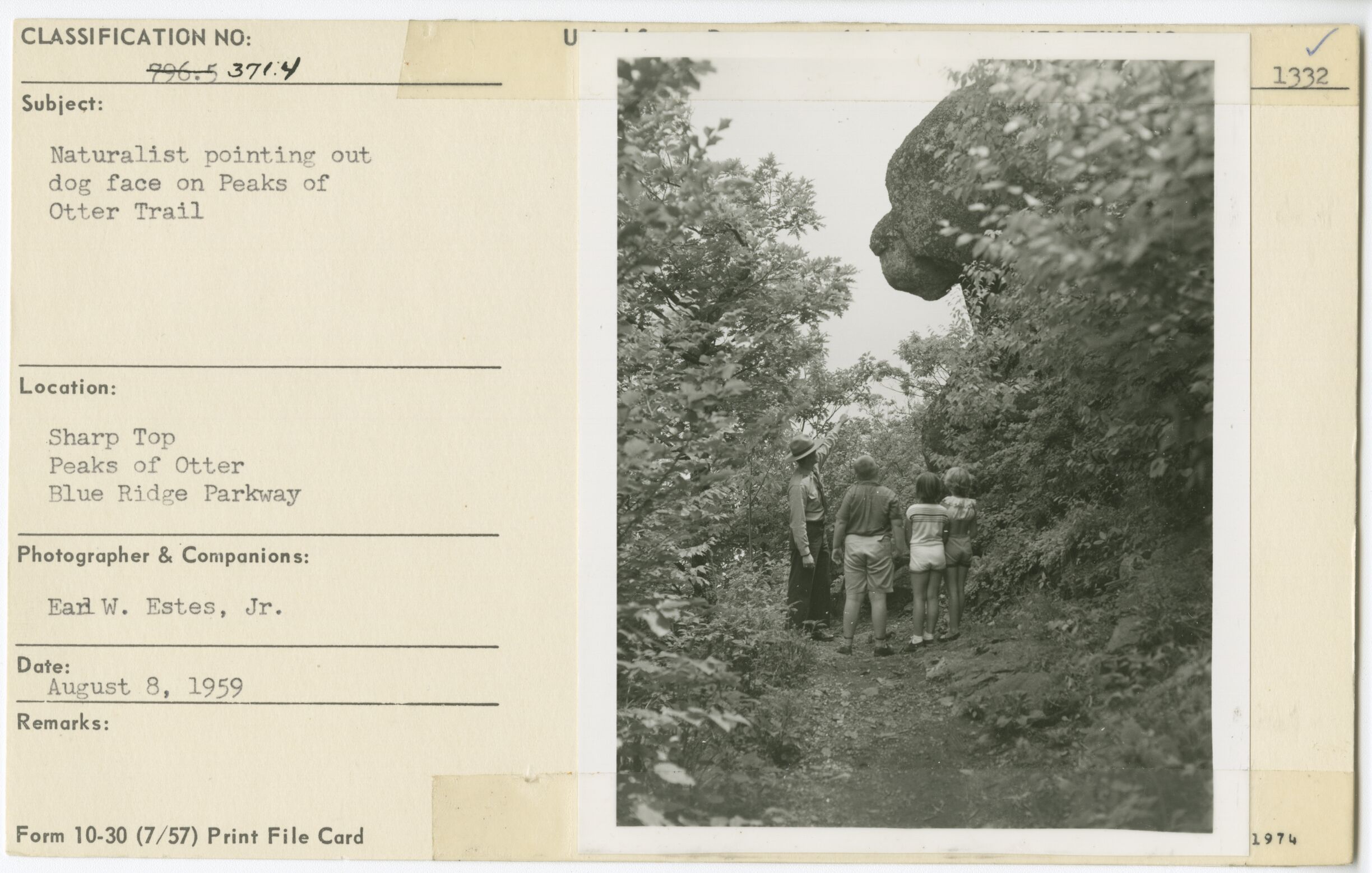 Ranger Naturalist pointing out dog face on Peaks of Otter Trail