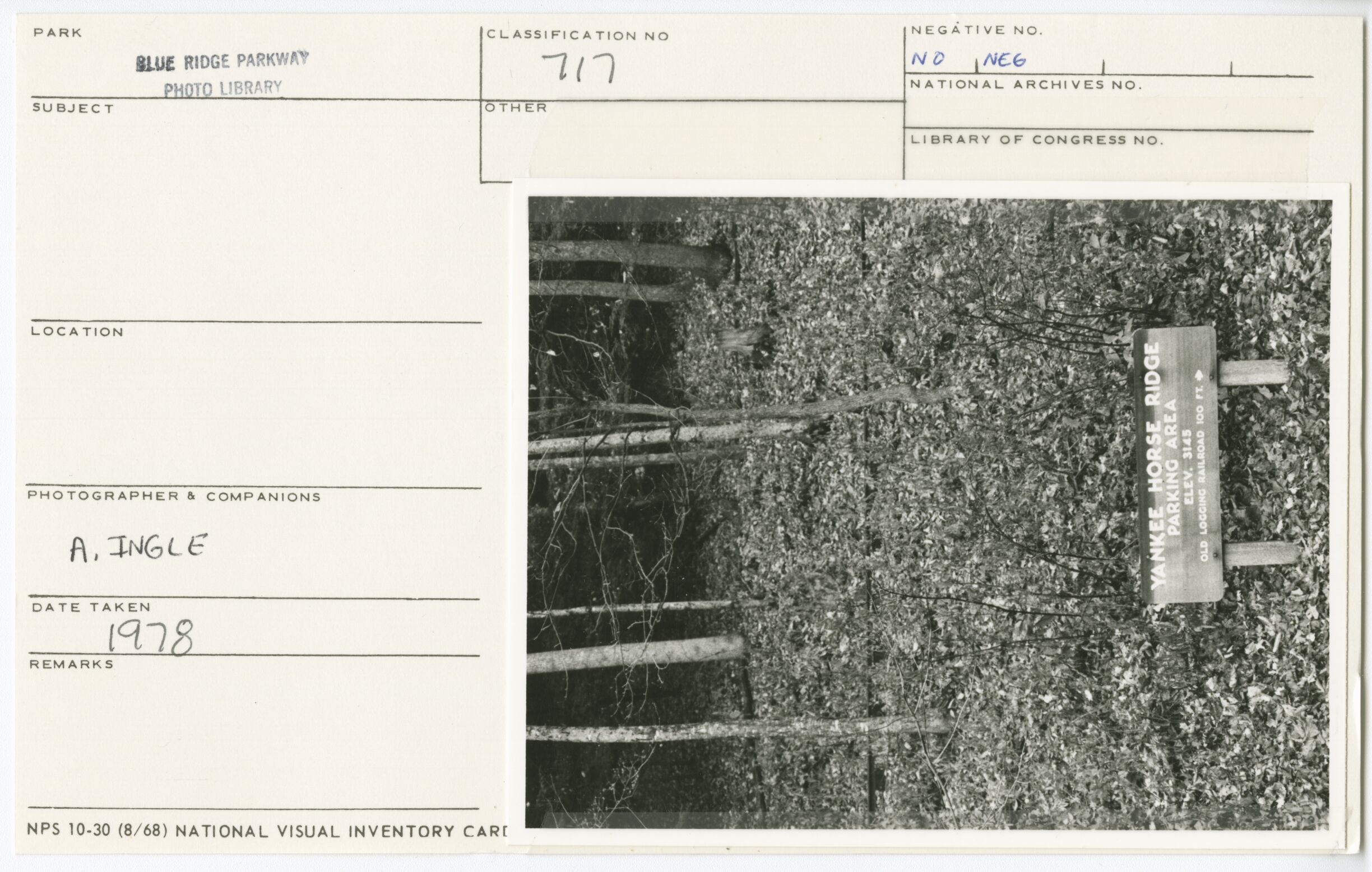 Yankee Horse Ridge Parking Area sign