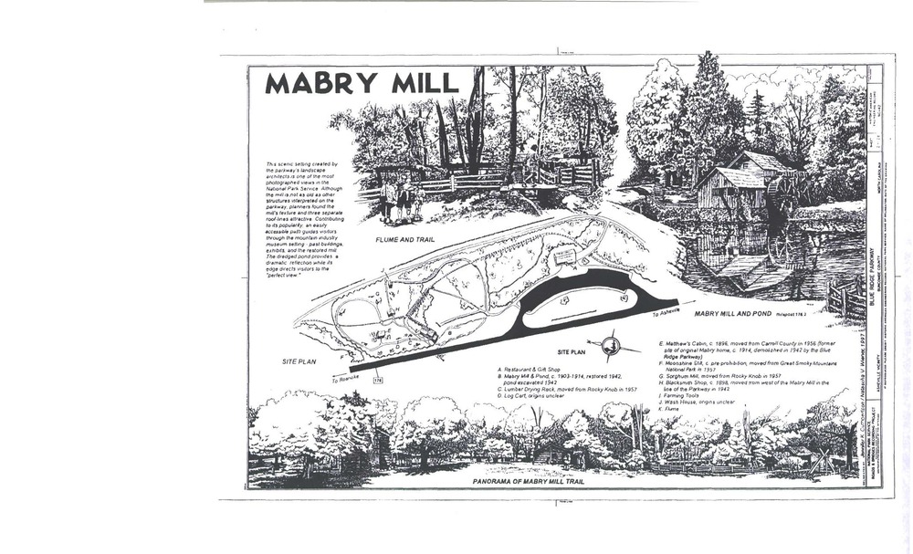 Drawing shows Mabry Mill and notable features in the area