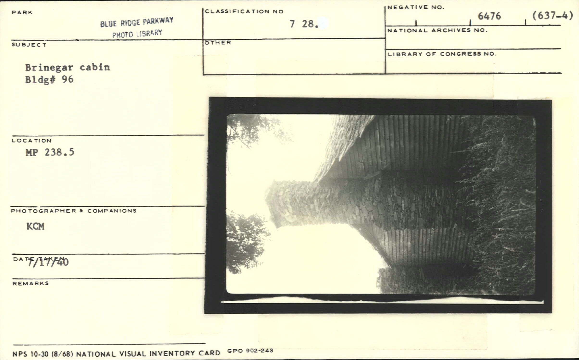 Brinegar Cabin, Bldg. #96