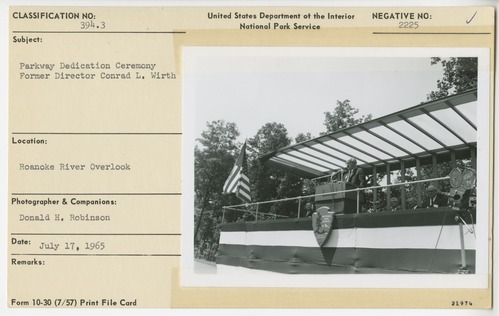 Official Dedication Ceremony of Blue Ridge Parkway around Roanoke - Former NPS Director Conrad Wirth