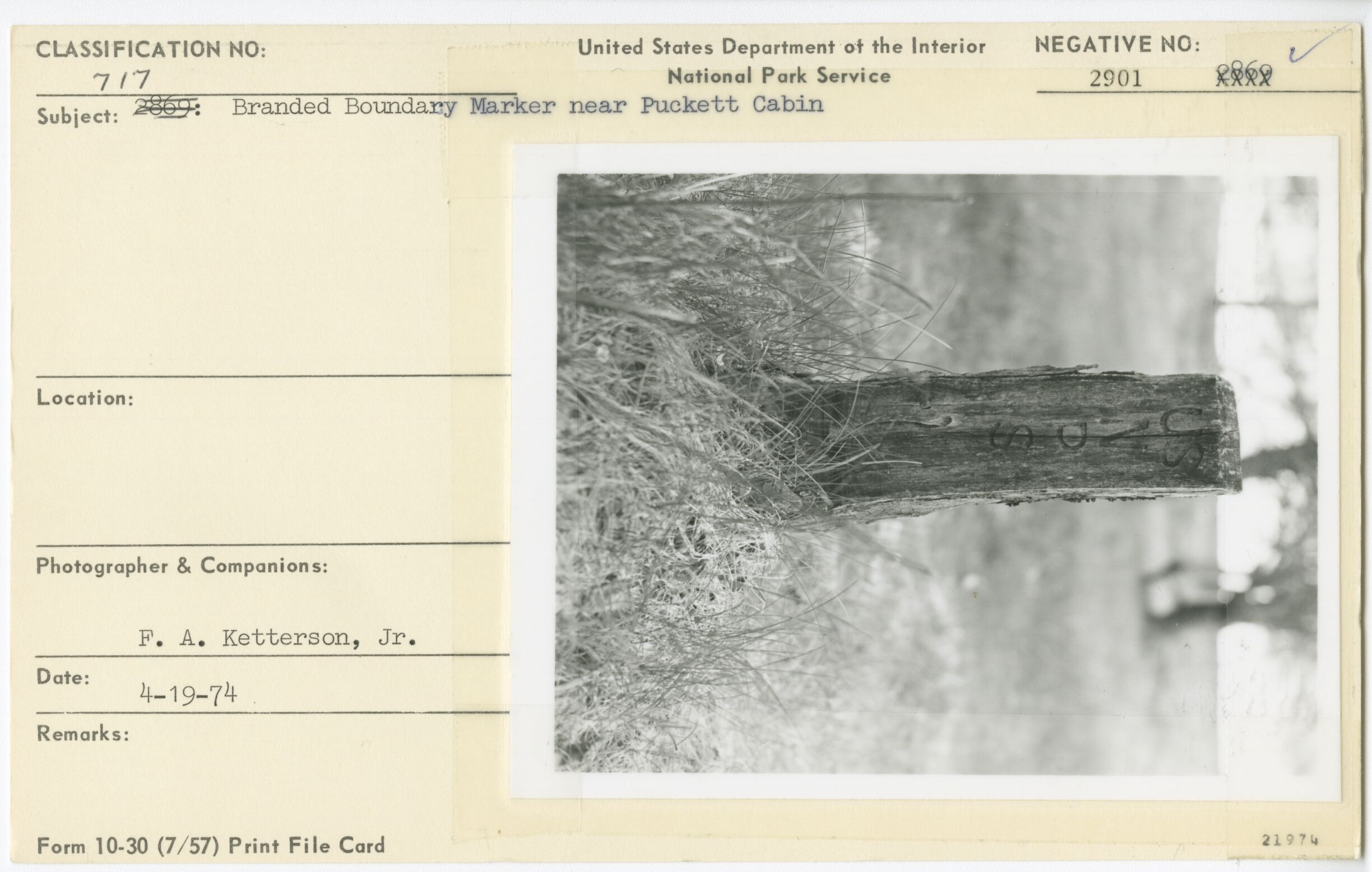 NPS boundary marker near Puckett Cabin