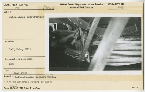 Lathe-turning segment wheel. Used in McCarter's report of Mabry Mill. Section 1-T, Mabry Mill