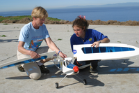 TEACHER ARGONAUT SUE SEWELL WITH ARGONAUT GINA PAMBIANCHI ASSEMBLE A NASA UAV USED IN THE RESEARCH WITH THE JASON PROJECT BROADCAST.