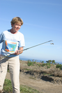 ARGONAUT TEACHER SUE SEWELL CAPTURING ALLIGATOR LIZARDS ON ANACAPA ISLAND DURING THE JASON PROJECT BROADCAST.