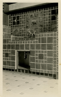 Scotty’s Castle Main House Kitchen looking southwest at west wall detail of tiled sink area. Circa 1930.