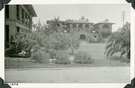 Unidentified square mansion with rounded arches and large groomed yard. Circa 1923. Previously catalog record identified as possibly Alfred MacArthur’s mansion. Black and white, horizontal, corner mounted to album page. Number in black ink at bottom left refers to historic photograph numbering system: 1074. Listed in earlier catalog record Other Numbers Field: 36. Black and white, 3 x 5 inch, horizontal format. Corner mounted on photograph album page.