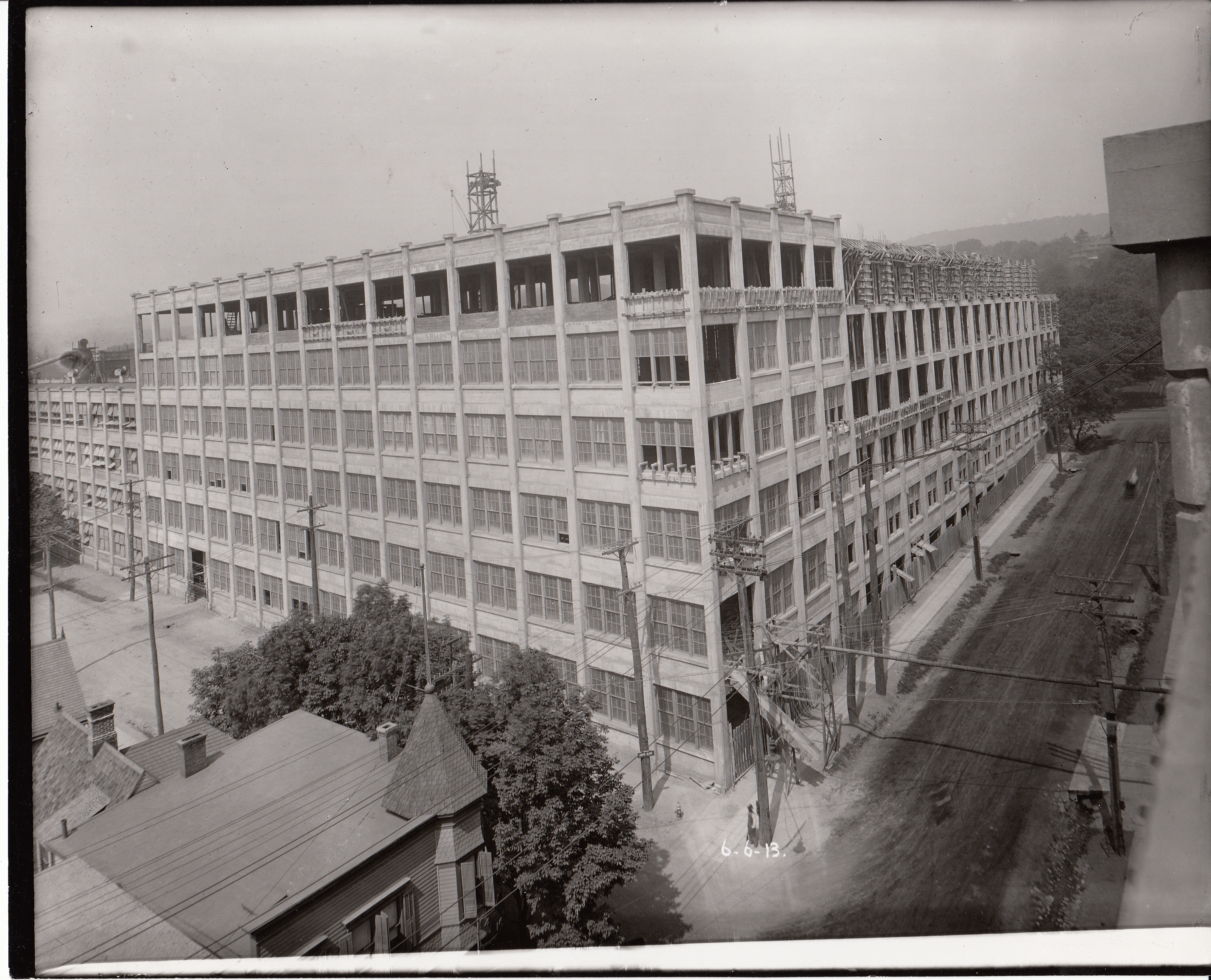 Storage Battery Building under construction, viewed from corner of Ashland Avenue, at left, and Lakeside Avenue.