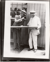 Henry Ford and Thomas Edison autographing board at presentation of Glass House.