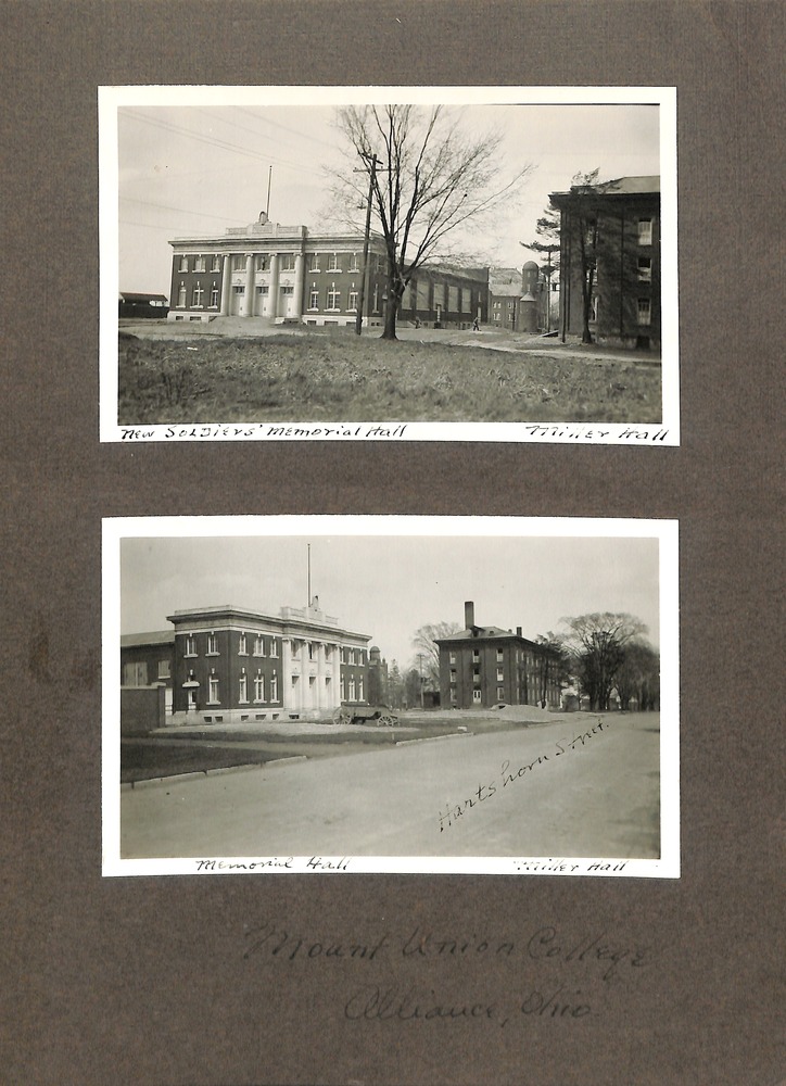 Mount Union College. new Soldiers' Memorial Hall on left in both photos, Miller Hall on right.
