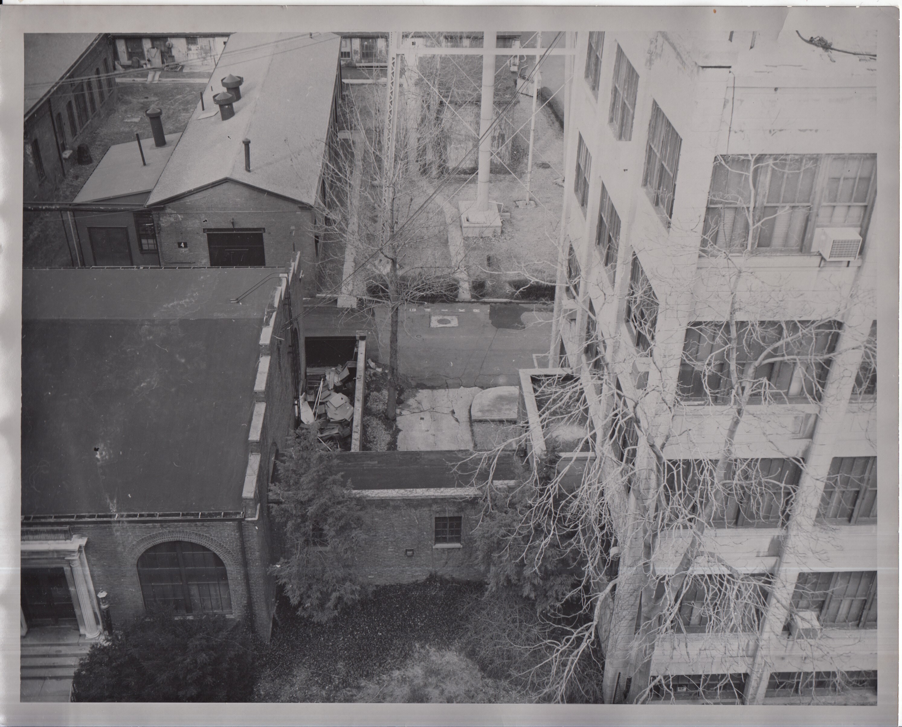 Laboratory Building 6 and Building 4 and Administration Building viewed from an upper floor of Storage Battery Building across Lakeside Avenue
