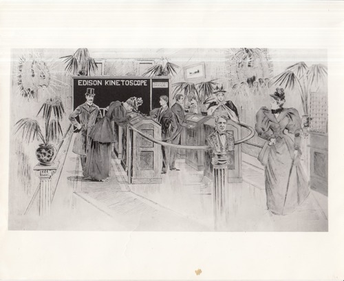Rendering, the first kinetoscope parlor at 1155 Broadway, New York City.