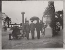 Thomas Edison, Louis Steringer, and an unidentified reporter from a Buffalo newspaper strolling at the Pan American Exposition of 1901.