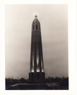 Edison Tower, Menlo Park, New Jersey, with model of incandescent lamp illuminated.