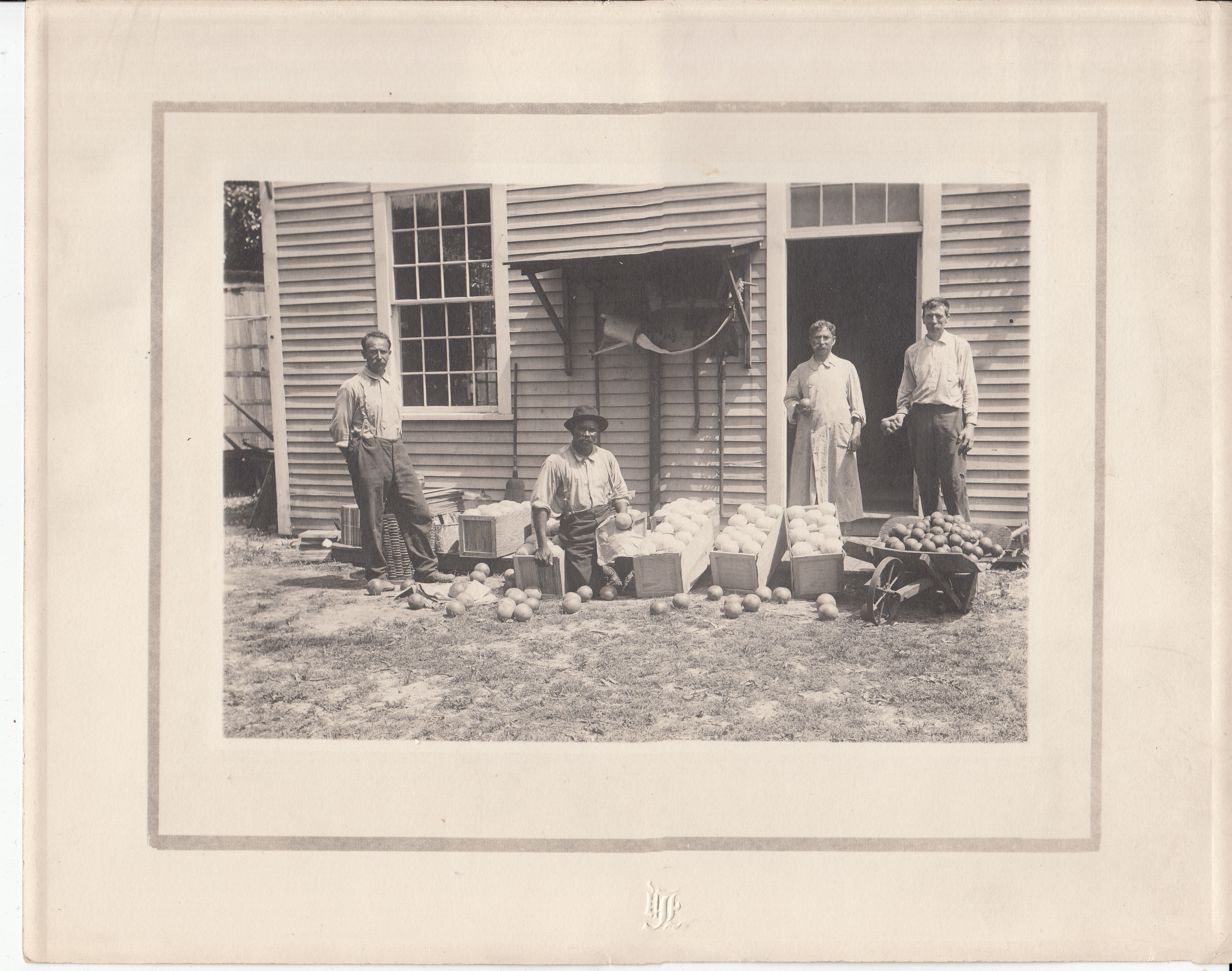 Fred Ott in doorway, and other workers outside Ft. Myers laboratory.