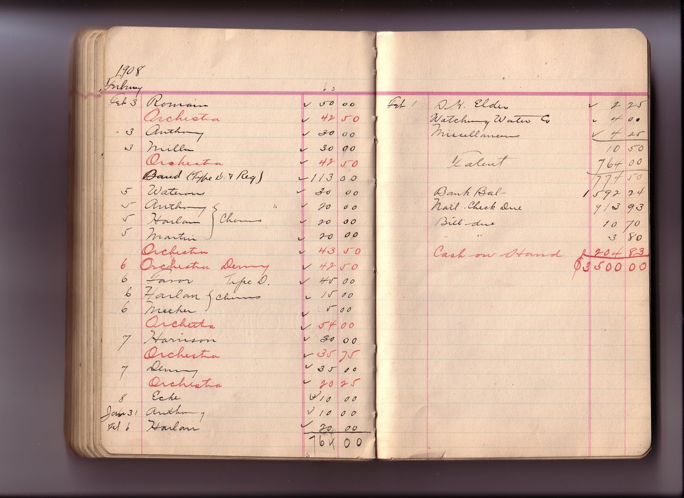 Thomas Edison's New York City Recording Studio Cash Book 03 (of 21), Image 87 (of 93).