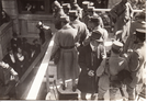 French army band and others on reviewing stand on Lakeside Avenue during Liberty Loan rally, William H. Meadowcroft in civilian clothes.
