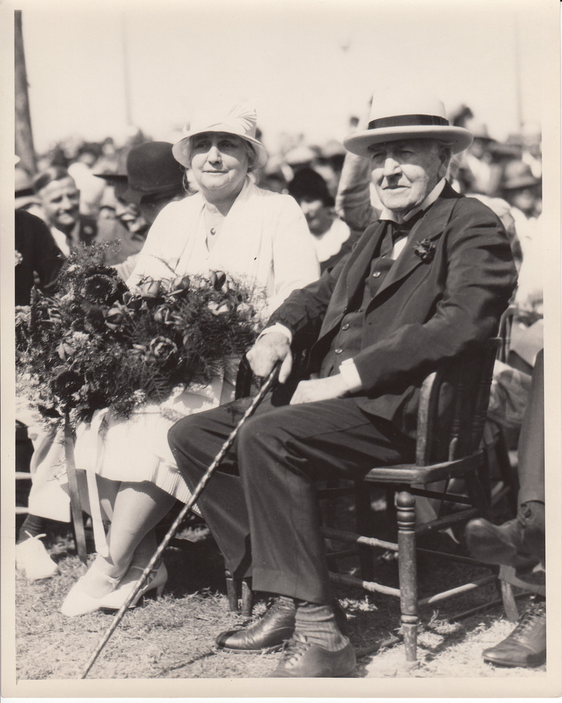Thomas Edison and Mina Edison at Fort Myers city park on Edison's 83rd birthday.