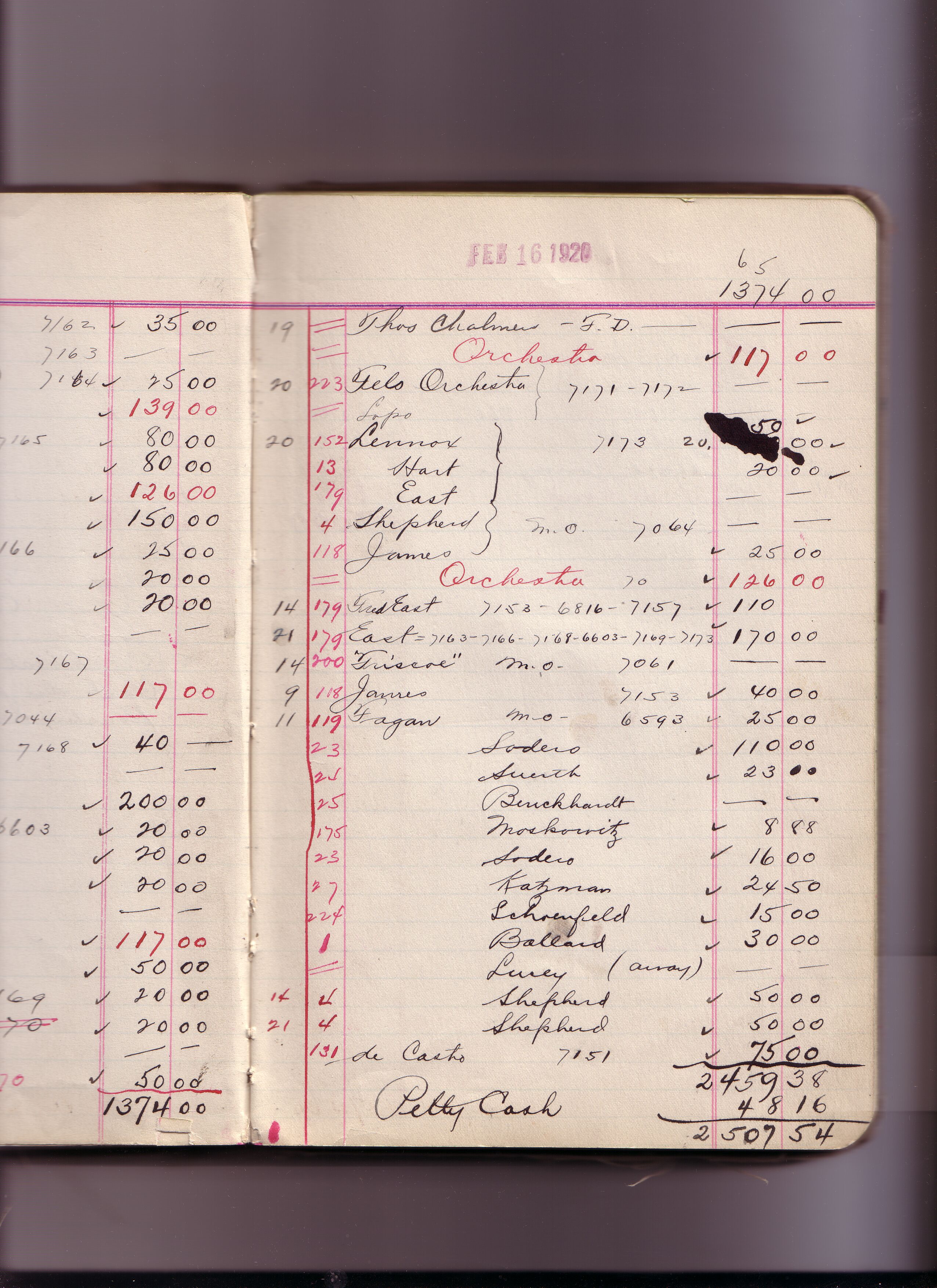 Thomas Edison's New York City Recording Studio Cash Book 16 (of 21), Image 209 (of 305).