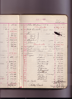 Some of the markings made in pencil in these cash books were made by ENHS Curator Leah Burt during the 1970s and/or early 1980s. For Leah Burt handwriting examples see pages for: December 19, 1921 (cash book 17) ; February 12, 1923 (cash book 17) ; October 27, 1924 (cash book 18) ; December 01, 1925 (cash book 19).