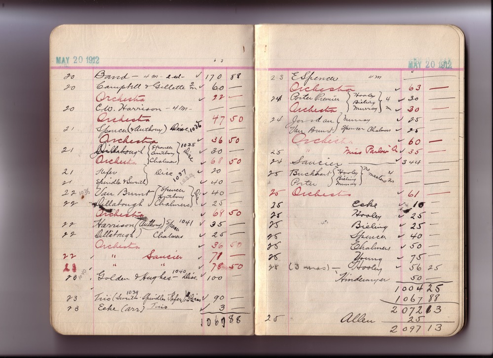 Thomas Edison's New York City Recording Studio Cash Book 09 (of 21), Image 13 (of 48).