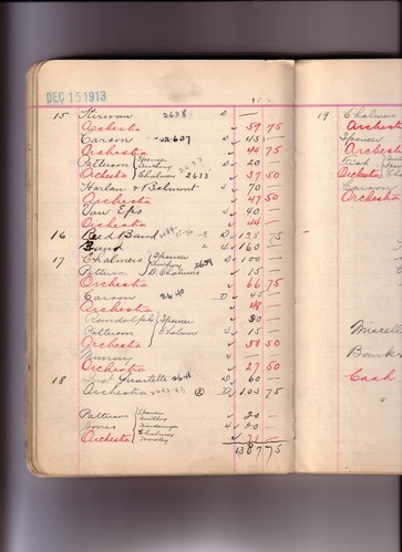 Thomas Edison's New York City Recording Studio Cash Book 10 (of 21), Image 126 (of 172). (Notebook #: PN-12-10-21, NPS catalog #: EDIS 1421), This book documents Diamond Disc matrices 1318 – 2968, expenditures for recording artist fees and other payments authorized by studio manager Walter H. Miller from October 21, 1912 – April 25, 1914. Digitally scanned December 2004 through July 2005 at resolution 300 dpi, 24 bit.