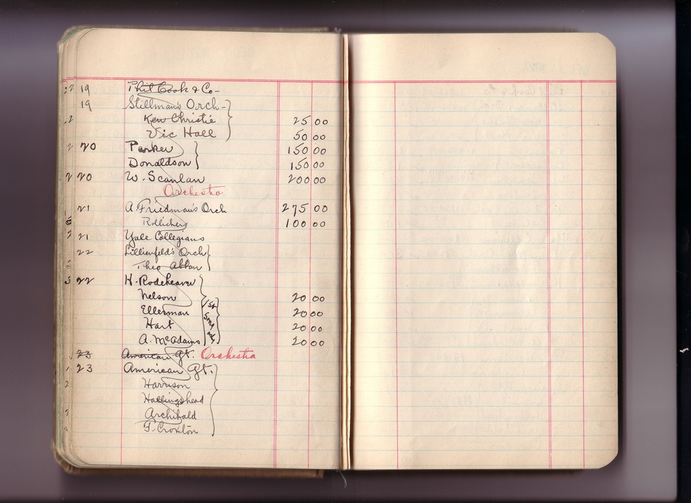 Thomas Edison's New York City Recording Studio Cash Book 20 (of 21), Image 30 (of 99). (Notebook #: PN-27-06-01, NPS catalog #: EDIS 1431), This book documents Diamond Disk matrices: 11720 – 19136, Needle Type matrices: N-100 – N-829, expenditures for recording artist fees and other payments authorized by studio manager Walter H. Miller from June 01, 1927 – March 30, 1929. Digitally scanned December 2004 through July 2005 at resolution 300 dpi, 24 bit.