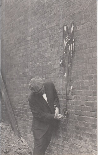 Miller Reese Hutchison about to ignite film used in the Edison home projecting kinetoscope to test its flammability.