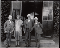 William H. Meadowcroft, "Billy" Sawyer and his wife, with Thomas Edison in front of Building 5 at Edison's West Orange Laboratory.